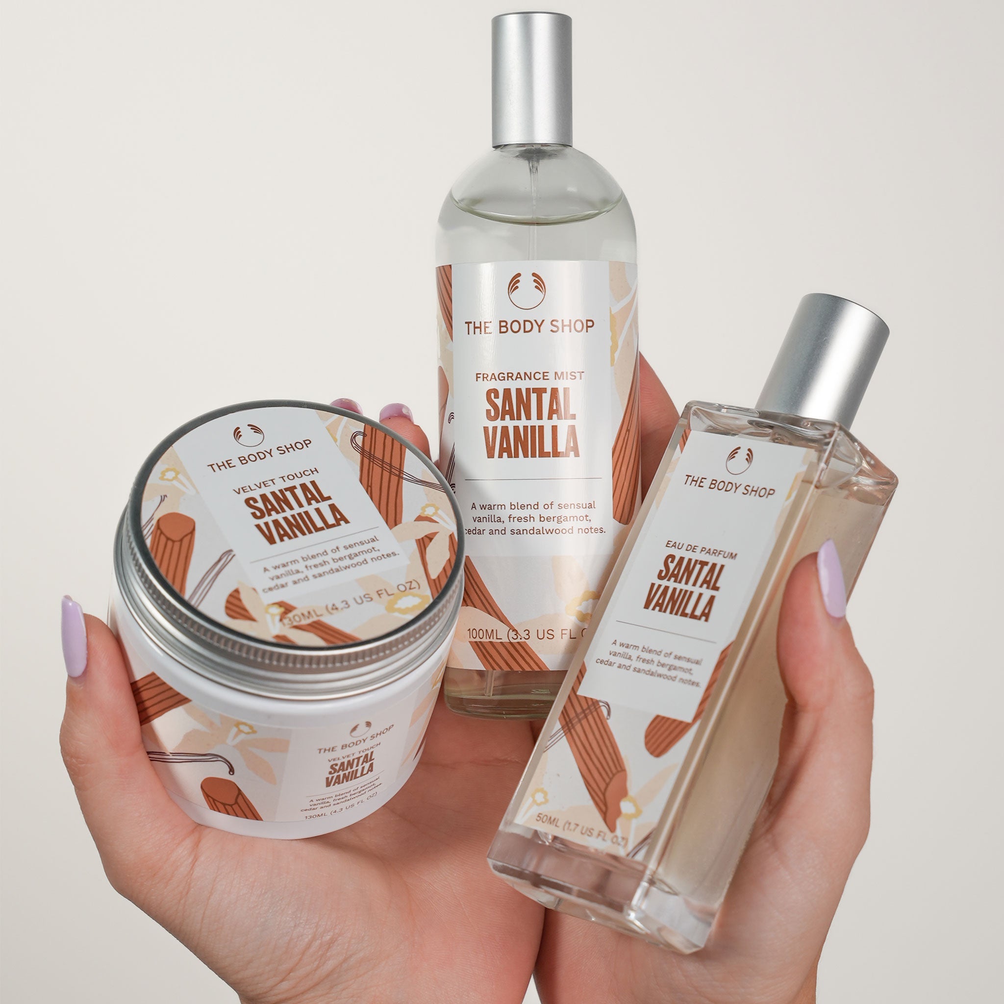 يمنحك بخاخ الجسم انتعاشًا فوريًا ورائحة حلوة وكريمية لا تُقاوَم من الرأس حتى أخمص القدمين.